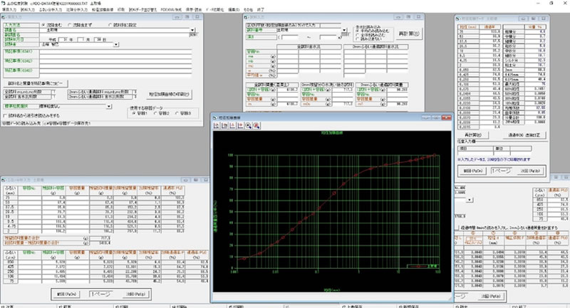 また工事に利用される骨材(砂利、砂など)については品質規格が決められており、既定の品質に達しているかを確認するために事前に材料試験を行います。